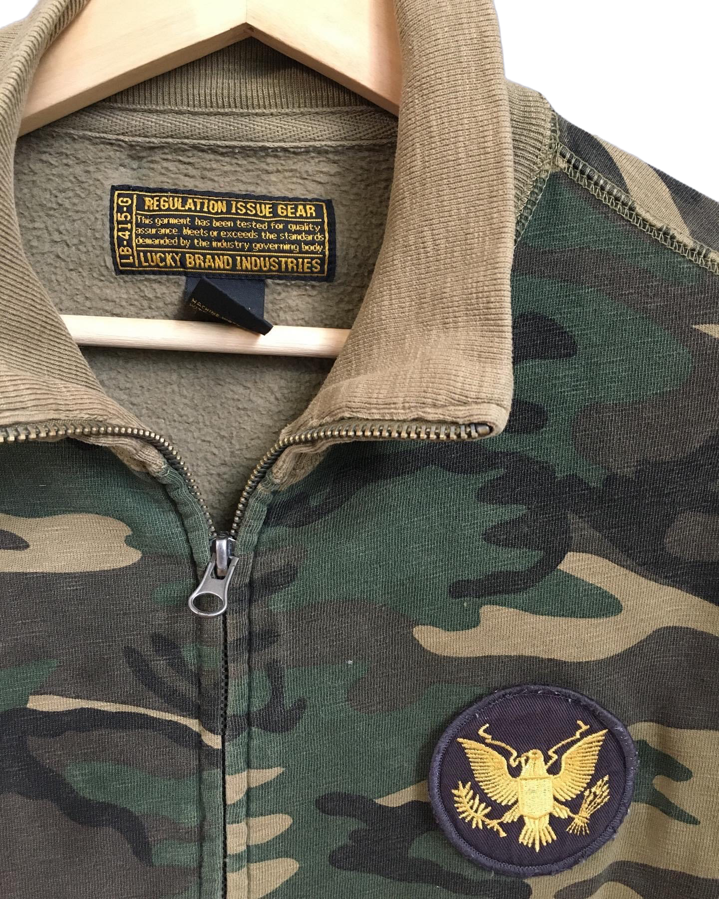 Vintage Lucky brand track jacket with vintage design esthetics made from cotton fleece. Size Medium / Large
